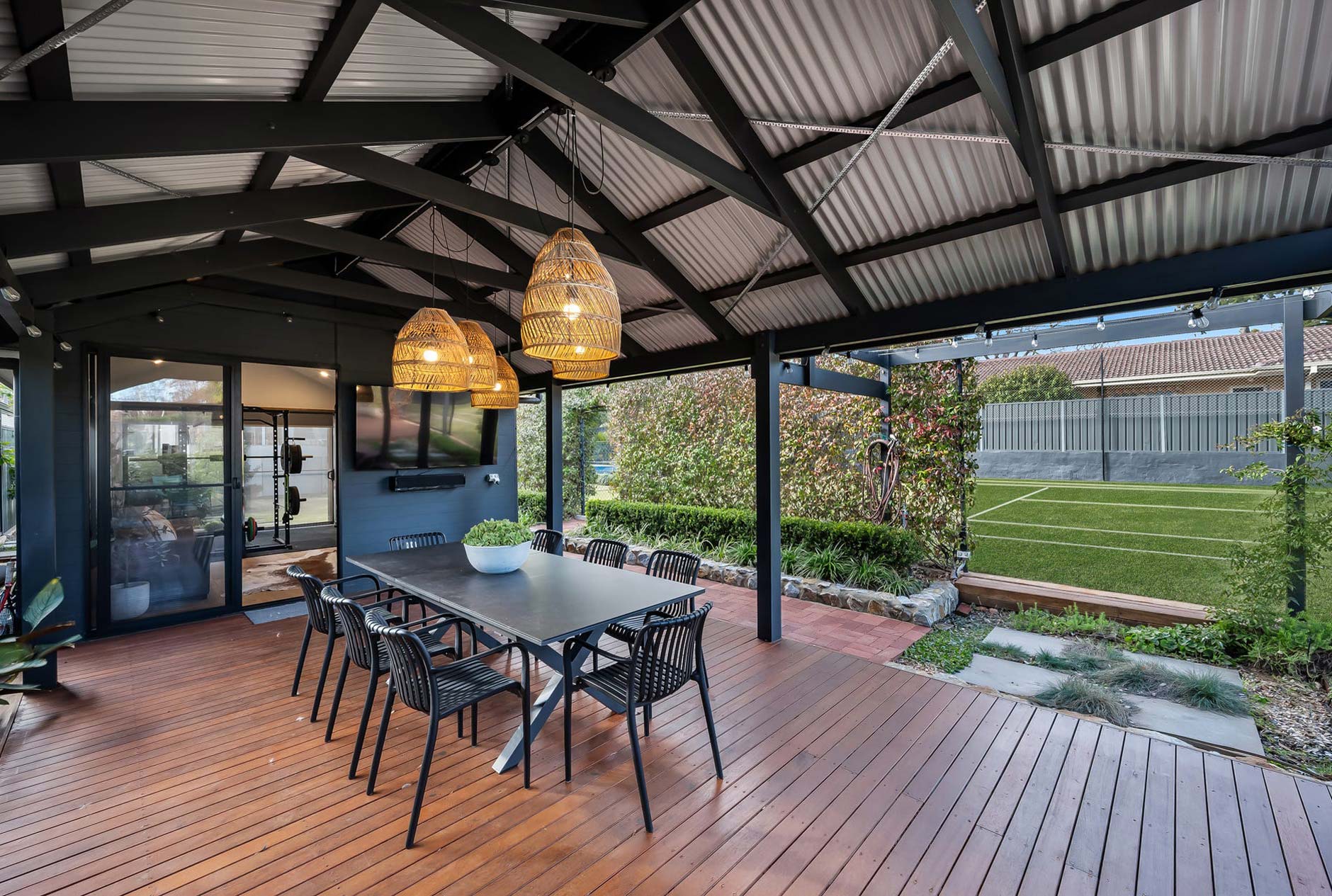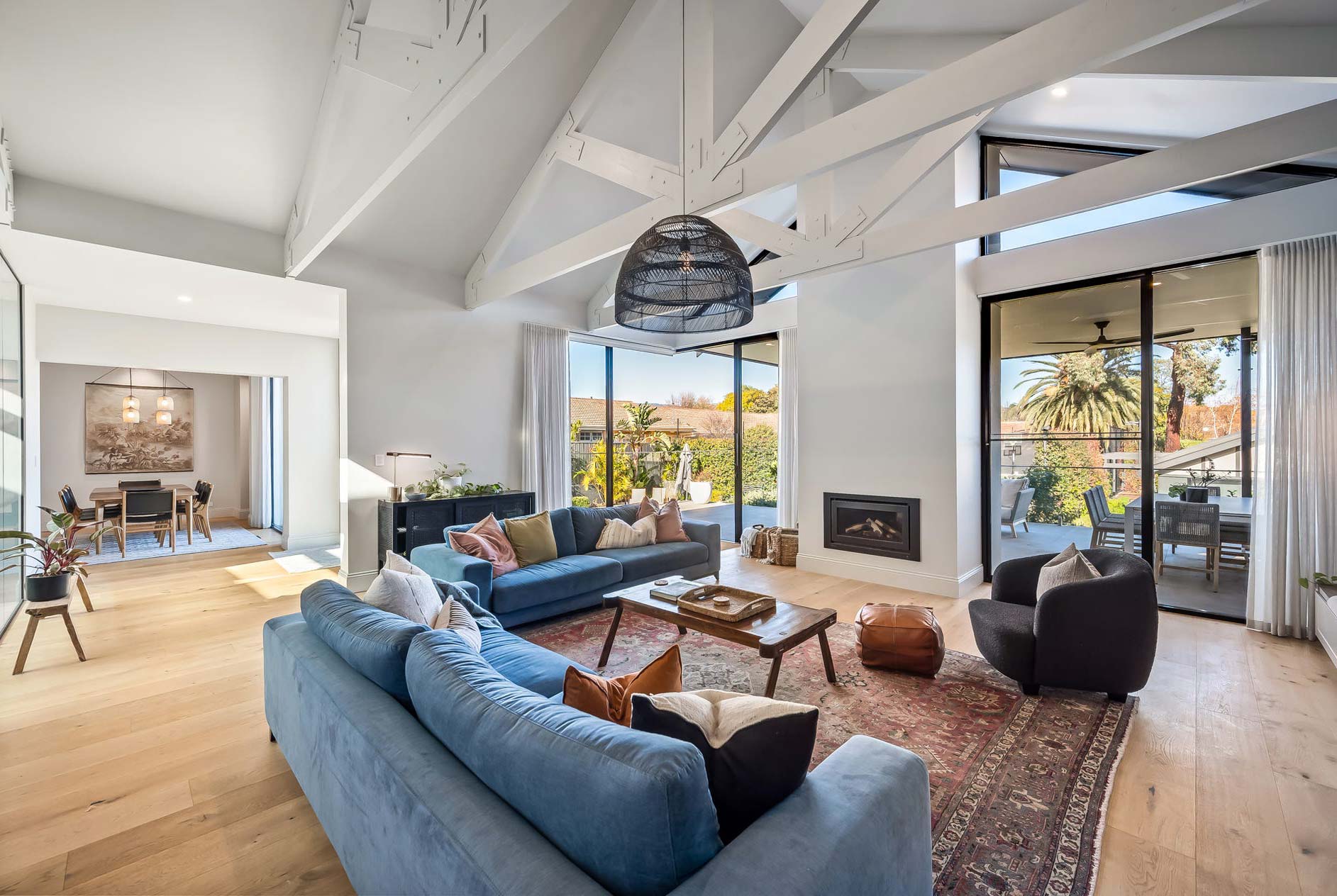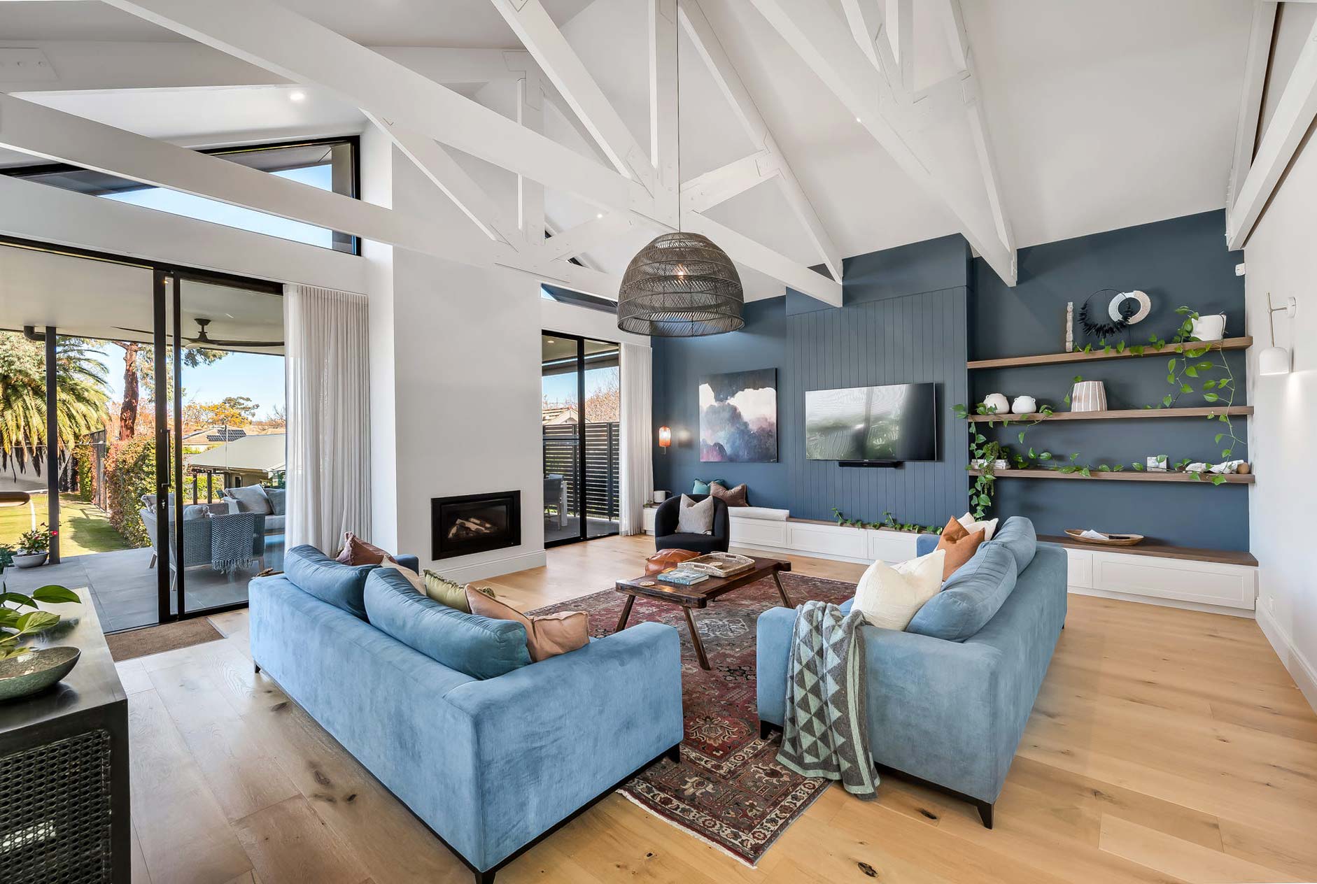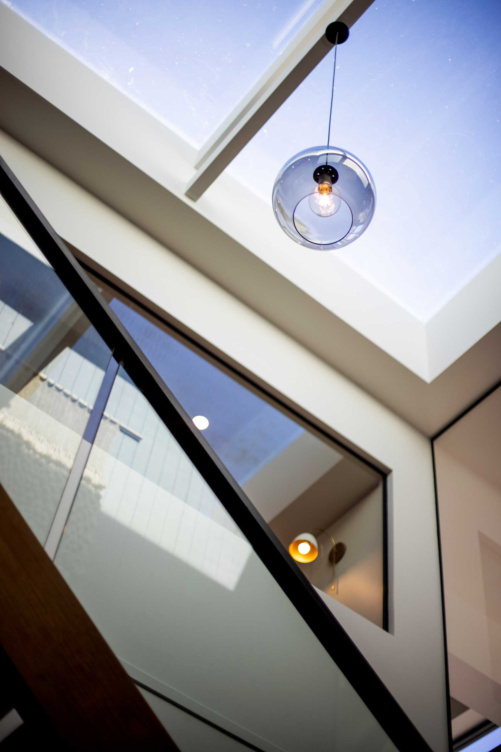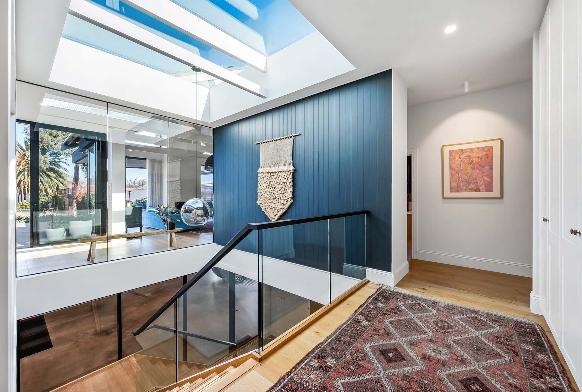 Every detail reflects Buildscope’s commitment to craftsmanship and care, from hardwood exposed trusses and Caesarstone ‘Cloudburst’ benchtops, to the Australian Oak staircase framed by glass balustrades, all culminating in the staircase void crowned by a custom skylight glass-roof atrium that fills the home with warmth and natural light.